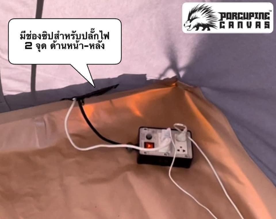 ภายในเต็นท์ด้านหน้า และ หลังมีช่องซิปสำหรับรอดปลั๊กสายไฟเข้ามาในเต็นท์