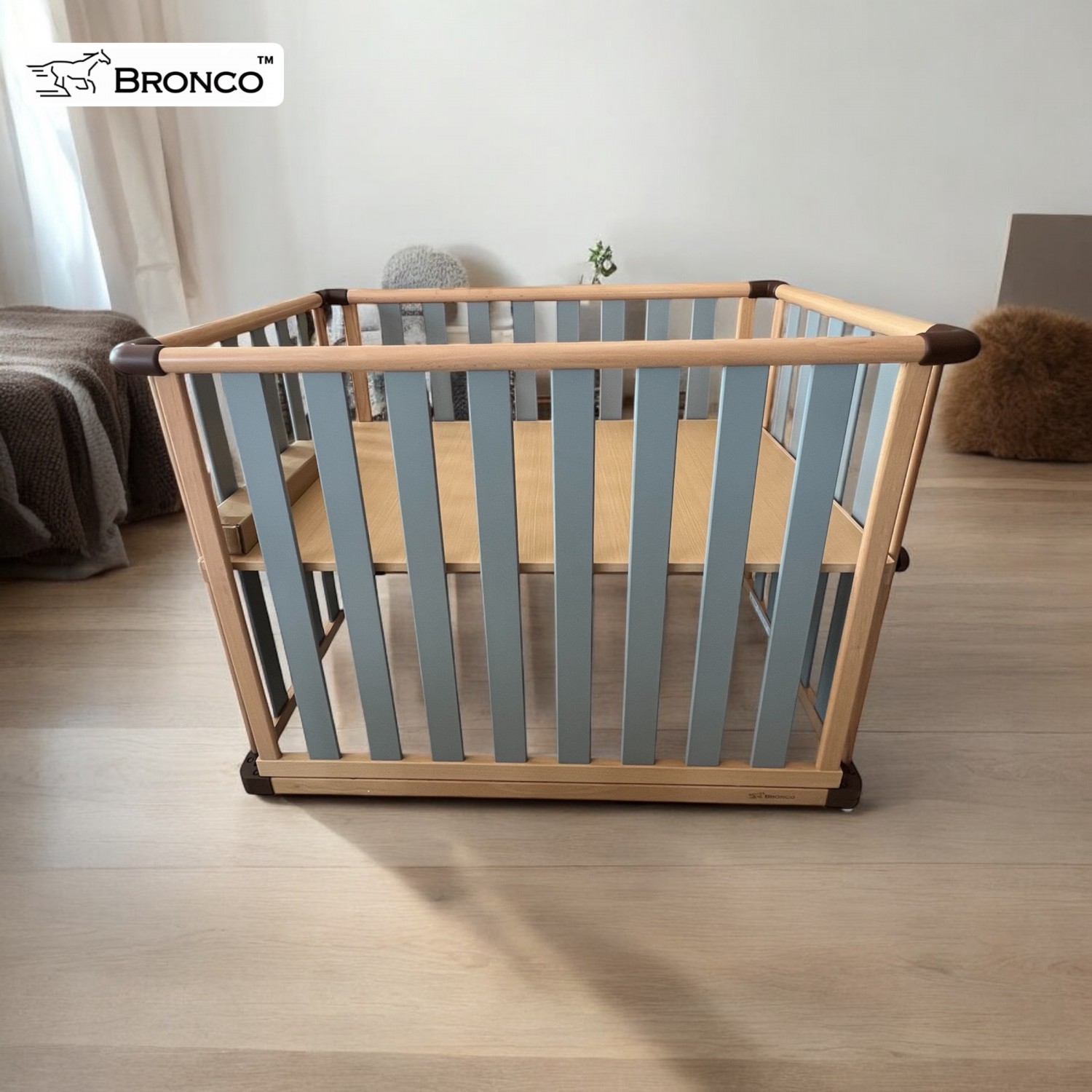 เปลไม้ BRONCO Premium German Beech 3 in 1( เปล , โต๊ะ , คอกกั้น)