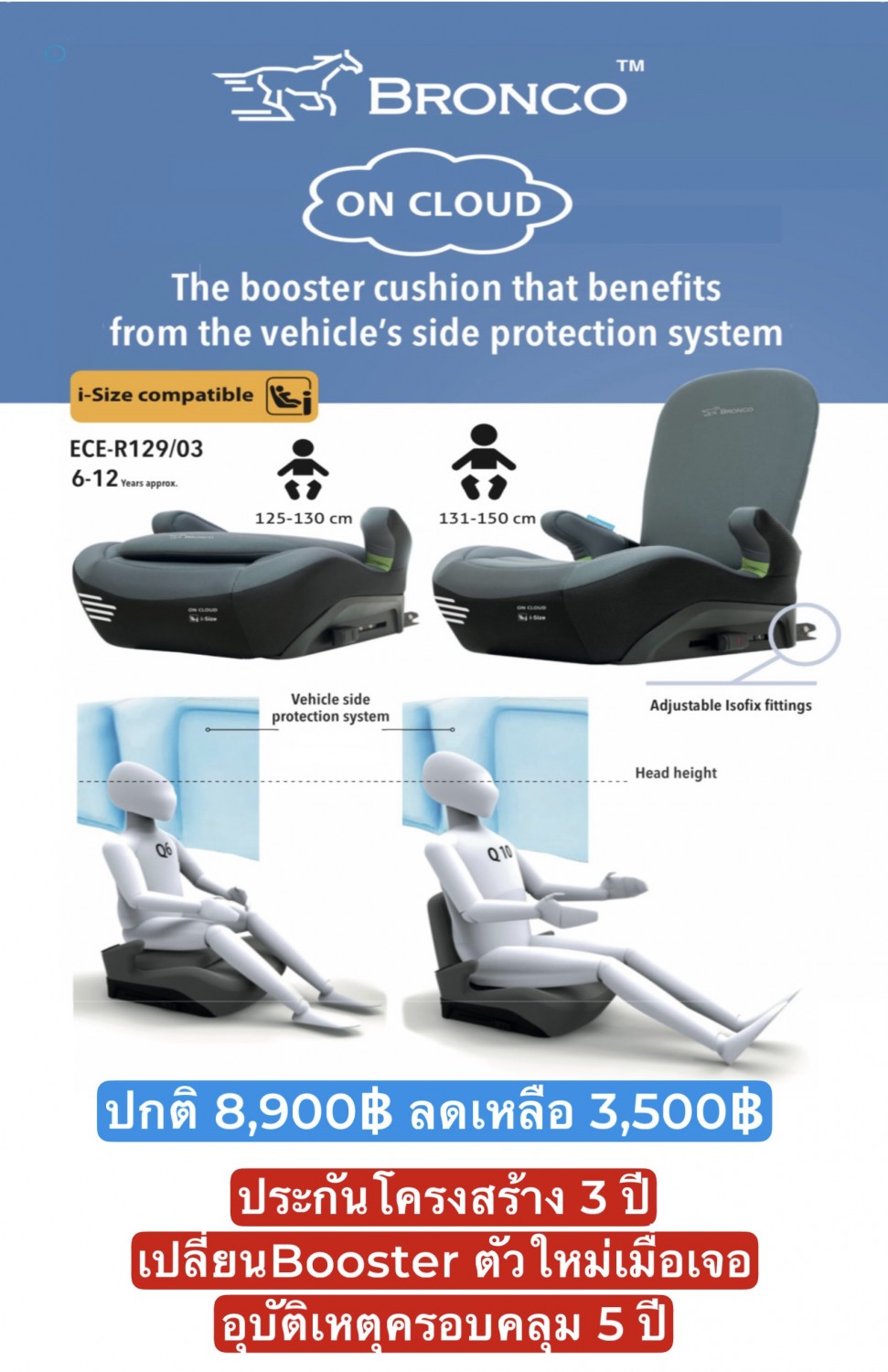 BRONCOON CLOUD BOOSTER i-Size Compatible ECE-R129/03 เหมาะสำหรับ 6 ขวบ - 12ขวบ