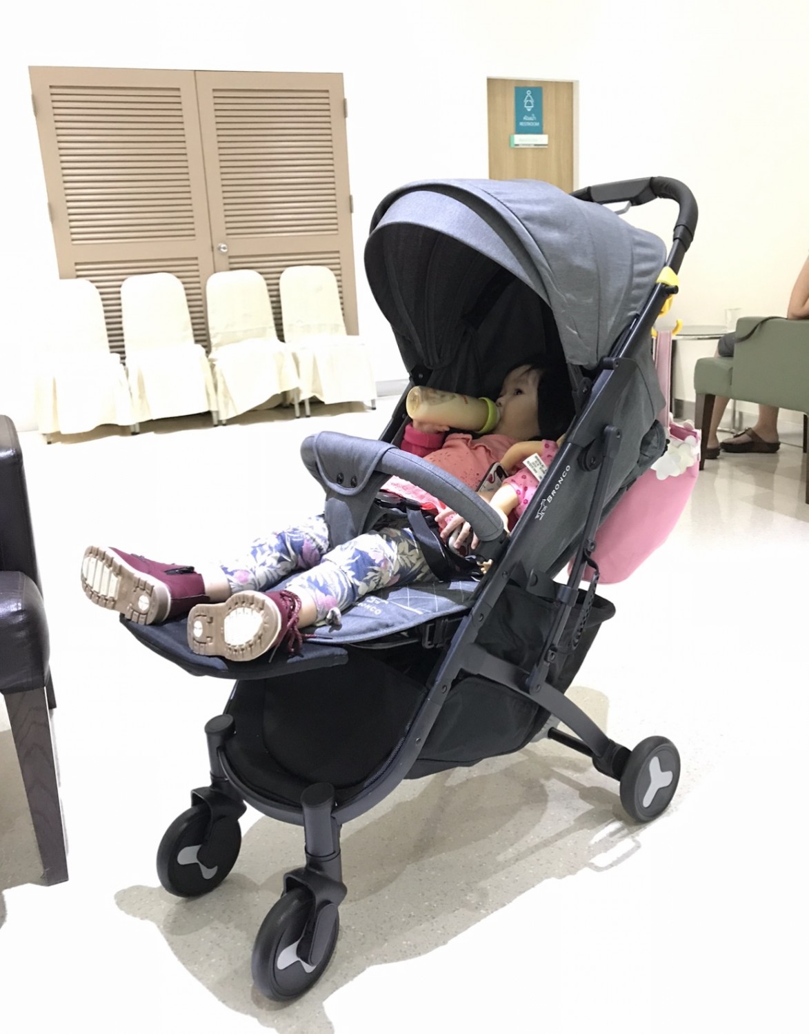 *ใส่ติดรถเข็นได้ตลอดเวลาไม่ต้องถอดออก ไม่มีผลต่อการพับ-กางรถเข็นเด็ก*
