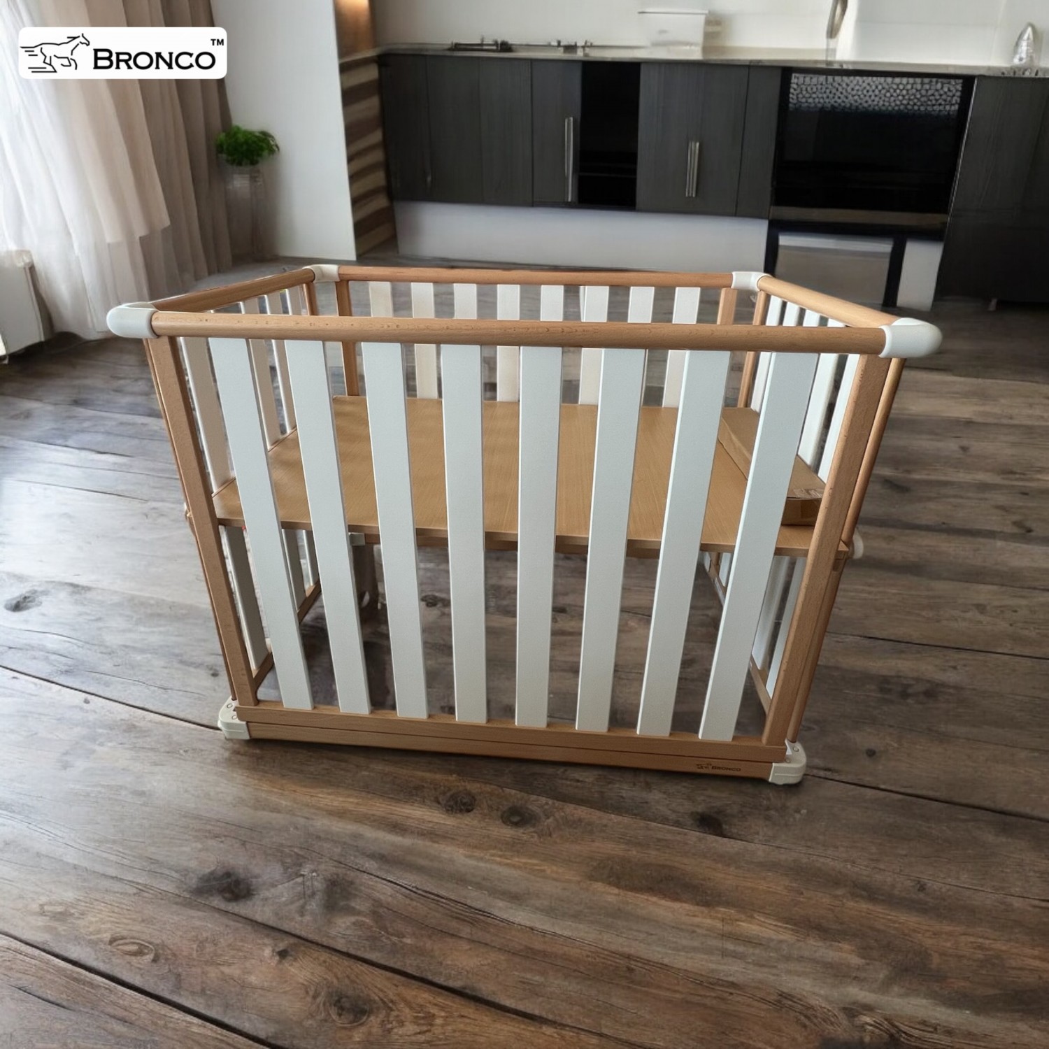 เปลไม้ BRONCO Premium German Beech 3 in 1( เปล , โต๊ะ , คอกกั้น)