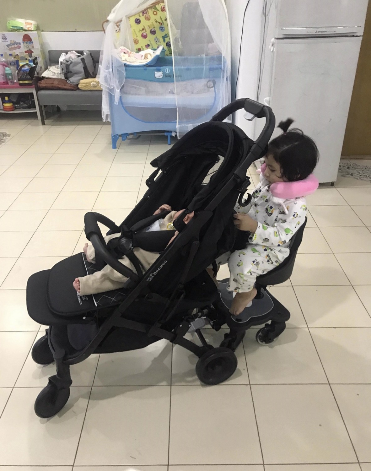 *ใส่ติดรถเข็นได้ตลอดเวลาไม่ต้องถอดออก ไม่มีผลต่อการพับ-กางรถเข็นเด็ก*